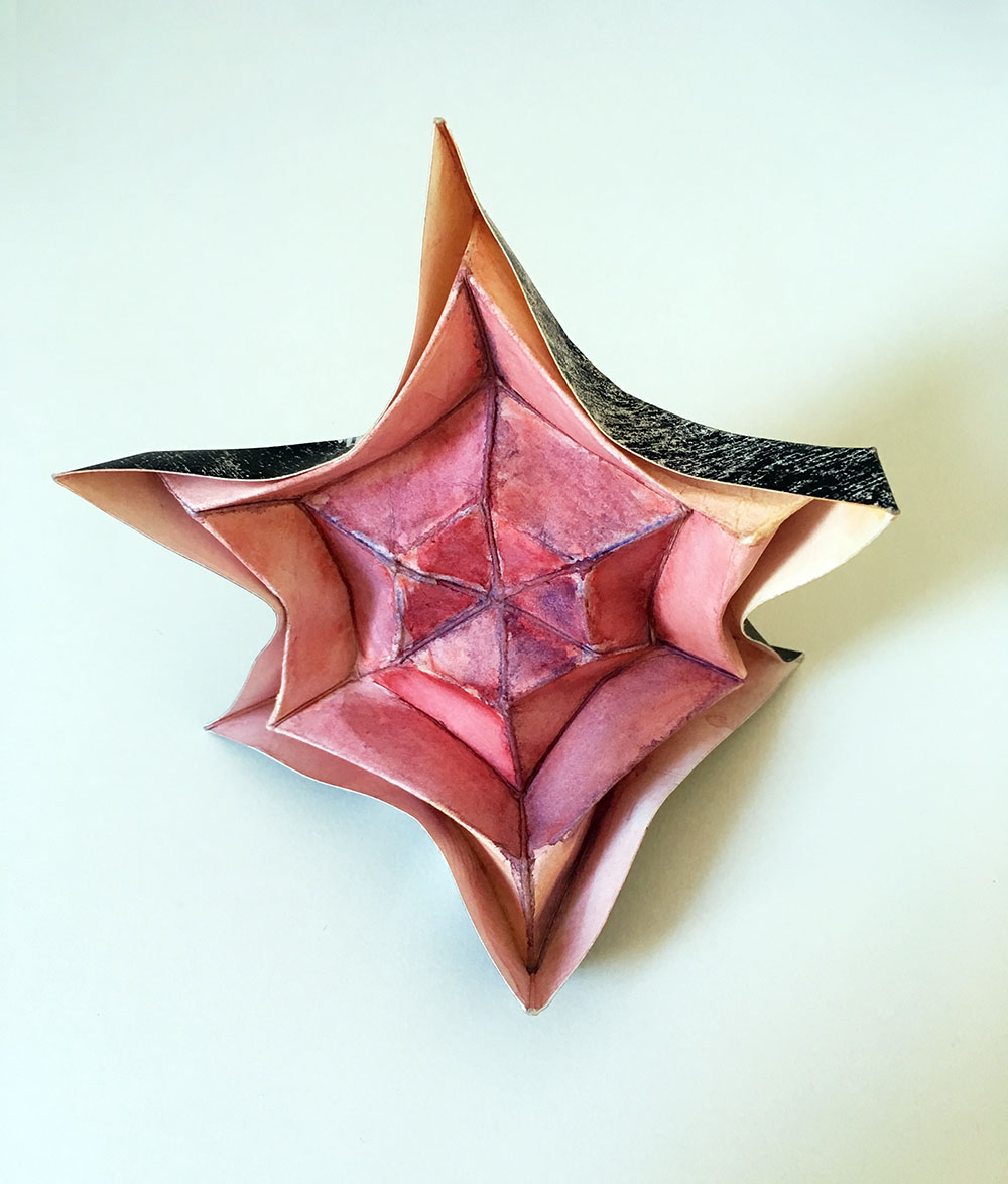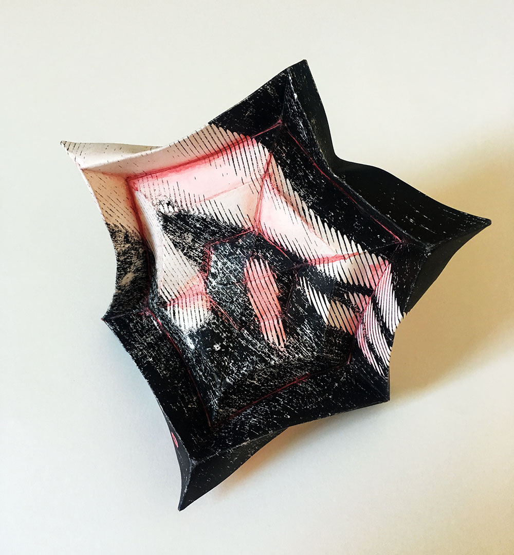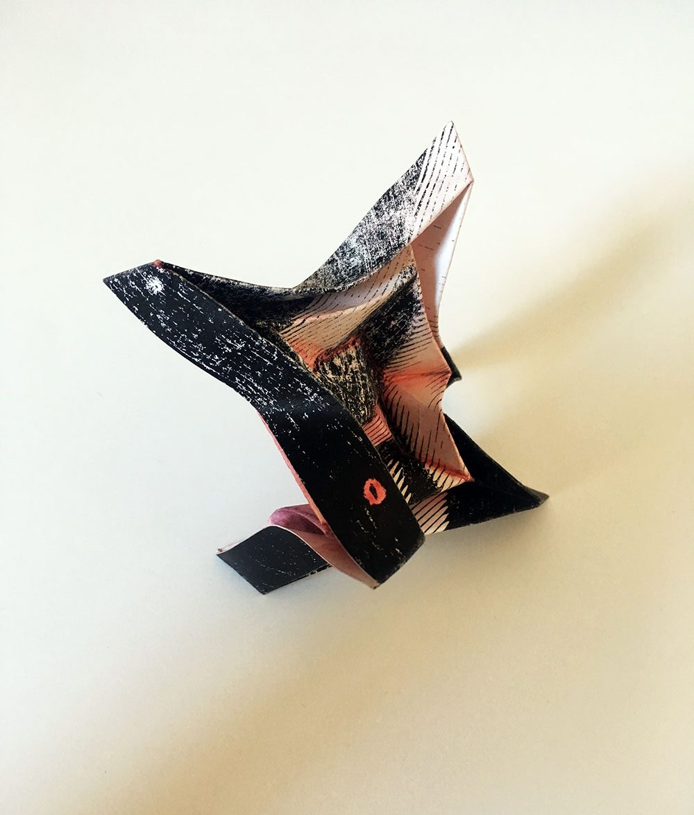 ‘Hexagon’ has been my most challenging folding project to date. It comprises of hexagonal parabolic folds. Ironically folding the printed paper was incredibly hands-on and I think it is evident within the folds themselves.