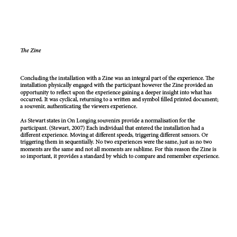 The Sublime Moment was an interactive and performative installation by Jane Elizabeth Bennett that took place in 2013.