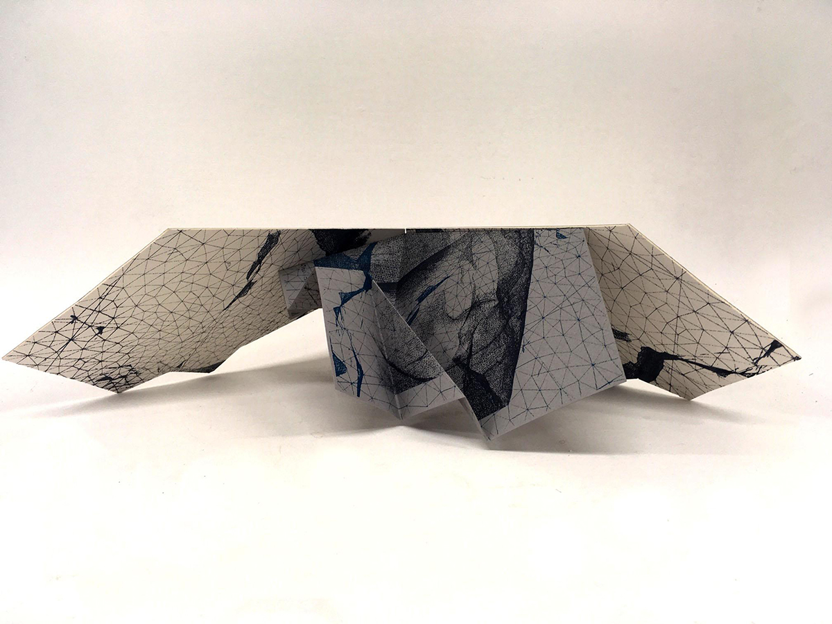 Three-dimensional scans have been taken of my myself and whilst they provide an accurate representation of me, they are fractured where data has been inadequately collected and have been reduced to nets and frames to connect missing information. We, as viewers, need to form a visual narrative and explore the portrait.